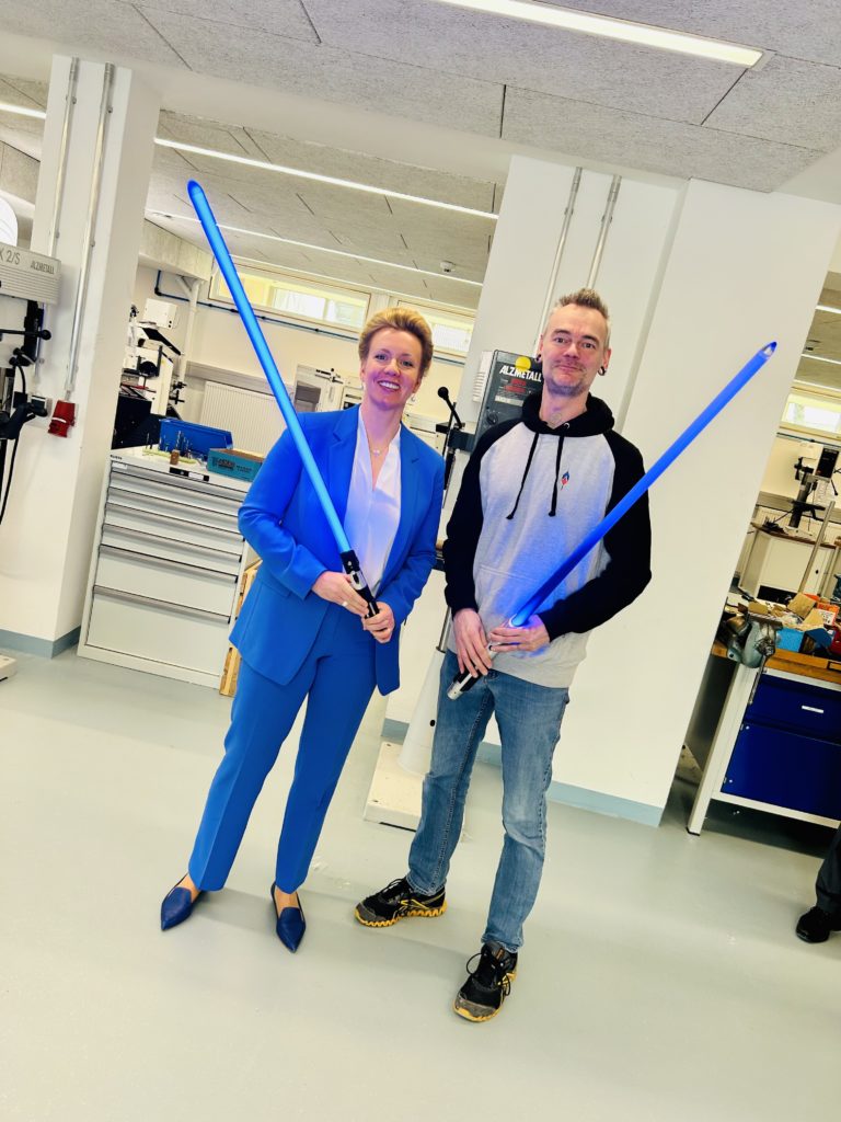Dass die Idee eines Lichtschwerts als Lernträger sich aber bereits bis ins Ministerium Für Kultur Und Wissenschaft Des Landes Nordrhein-Westfalen herumgesprochen hat, davon waren wir dann doch überrascht. Ina Brandes hat sich als Star Wars Fan bekannt und am vergangenen Freitag den letzten Tag unseres Lichtschwertkurses besucht.