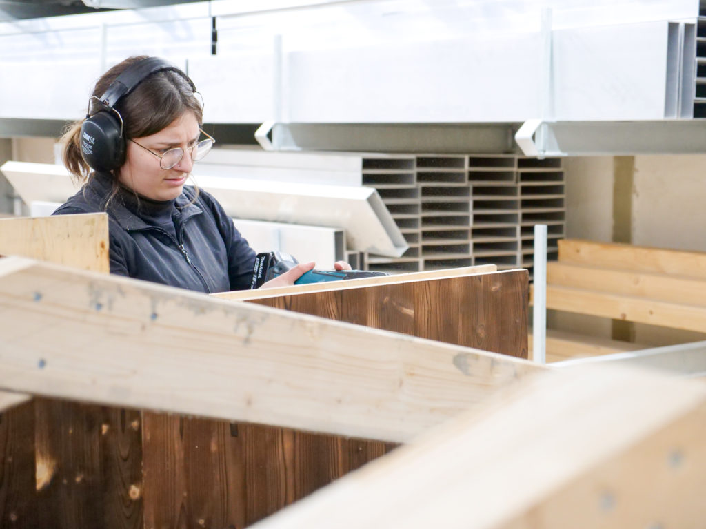 Das Praxisprojekt bot den Teilnehmenden die Möglichkeit, in einem teamorientierten Umfeld zu lernen und zu wachsen. In zwei Teams eingeteilt, widmeten sie sich einem vordefinierten Bausatz und erlernten dabei essenzielle Fähigkeiten der Holzbearbeitung, Werkzeugkunde sowie die Materialeigenschaften von Holz. Der fachübergreifende Austausch zwischen Auszubildenden und Studierenden förderte nicht nur das Miteinander, sondern auch den wertvollen Input jedes Einzelnen.